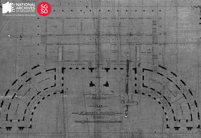 This is the building plan for the St Joseph’s Institution. Due to a lack of funds, the school was only completed 12 years later. It was opened in 1867.